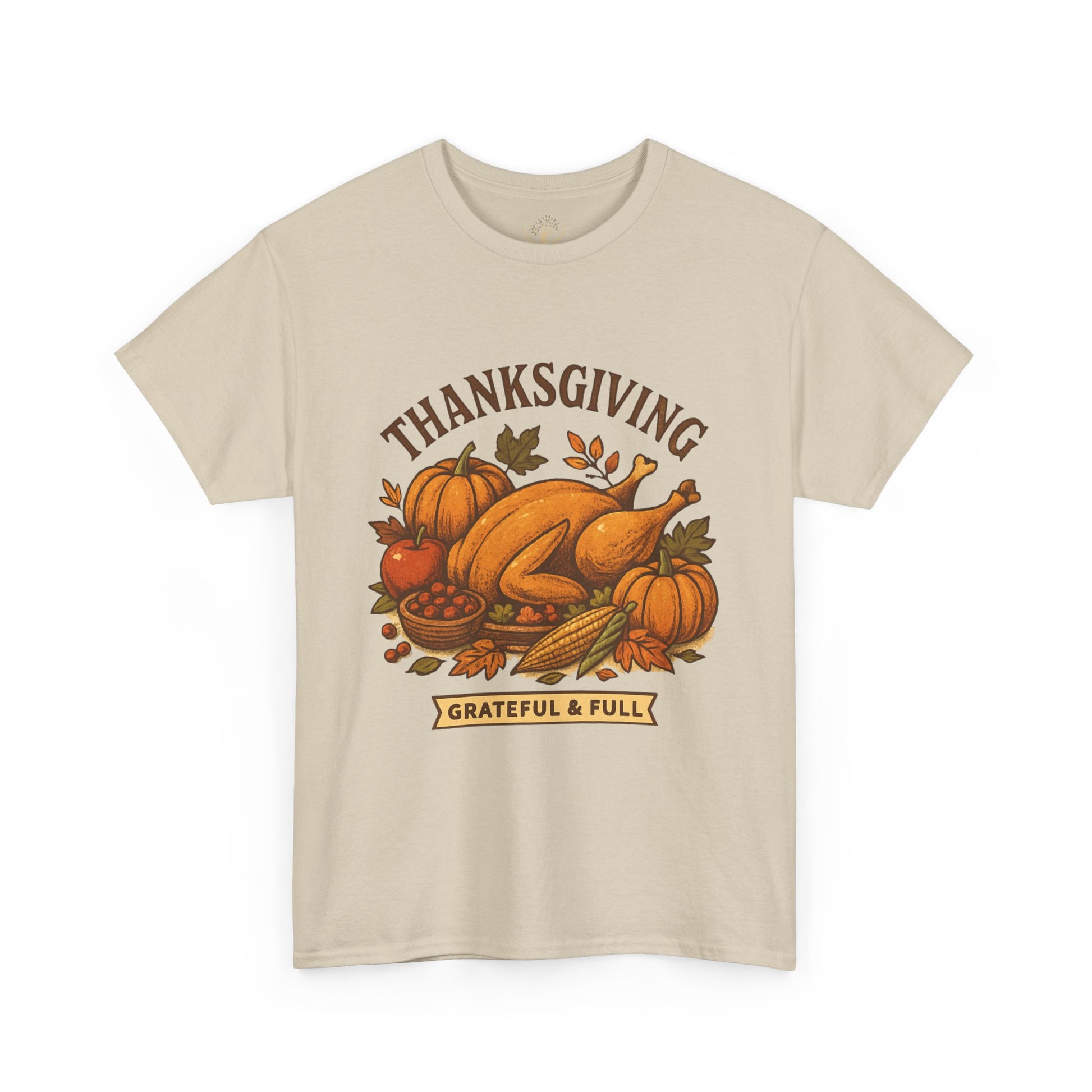 Thanksgiving Grateful & Full Unisex Heavy Cotton Tee